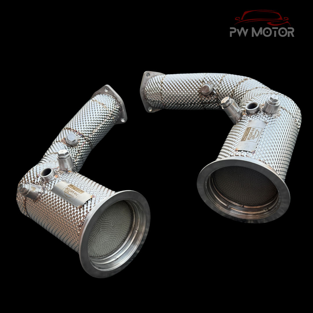 Upgrade your Audi RSQ8 to new levels of performance with PW MOTOR Catless heat shielded Downpipes.