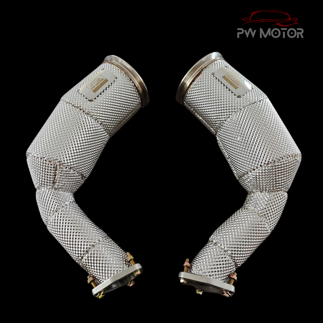 Upgrade your Lamborghini Urus to new levels of performance with PW MOTOR Catless heat shielded Downpipes.
