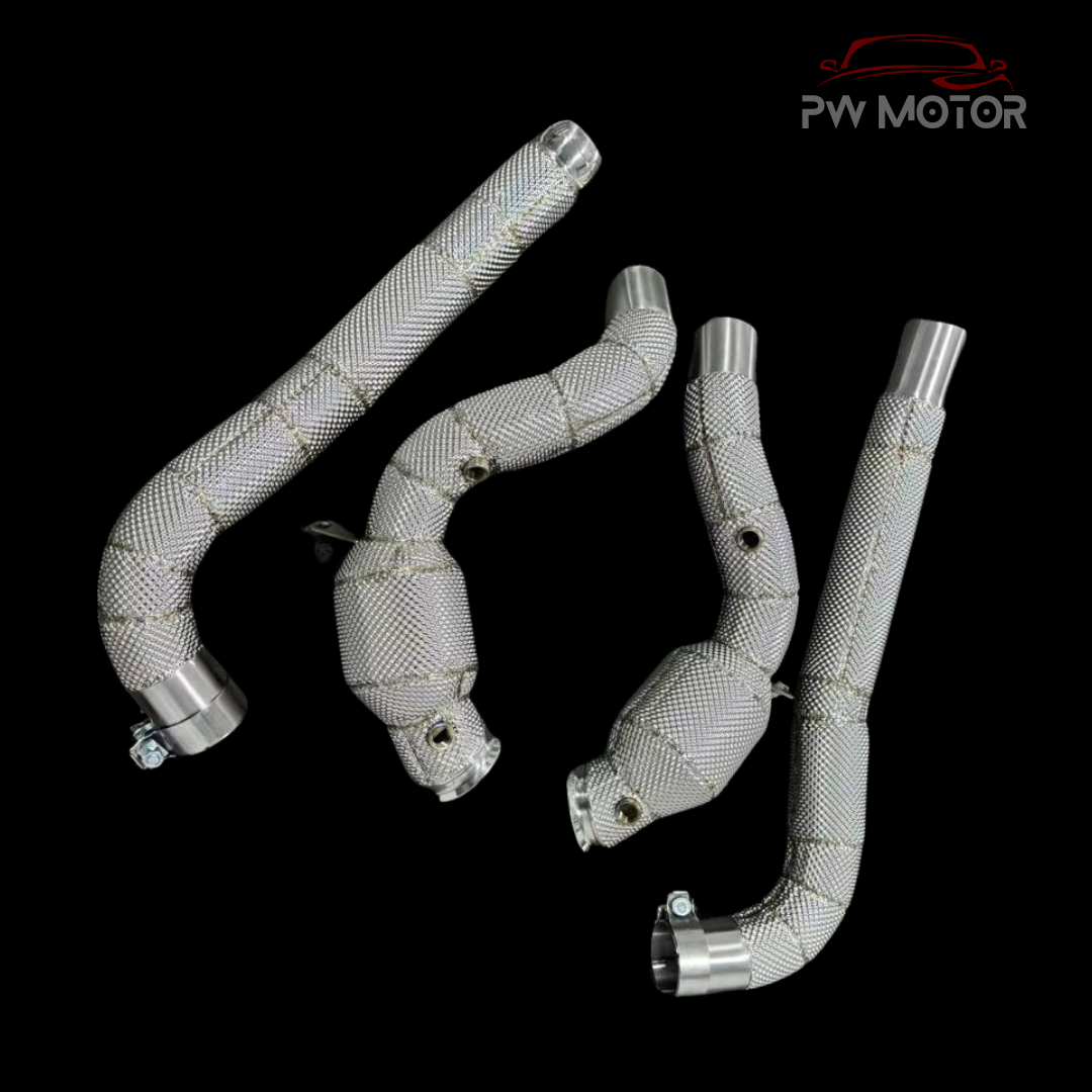 Upgrade your Mercedes AMG GT C190 to new levels of performance with PW MOTOR Catless heat shielded Downpipes.